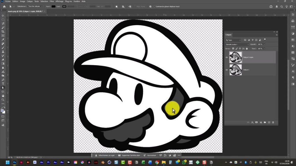 → Si besoin : clic droit sur le calque > Pixeliser le calque